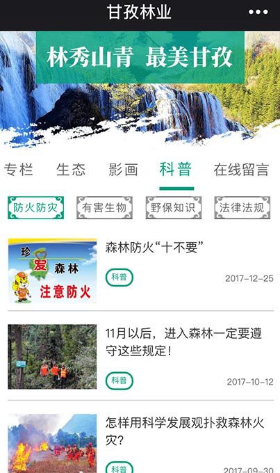 甘孜州林業(yè)局先后啟動甘孜林業(yè)無線站點、甘孜林業(yè)微信平臺、甘孜林業(yè)頭條號及甘孜林業(yè)新浪微博的建設(shè)運營,這些平臺推送均選取編輯與群眾生活息息相關(guān)、群眾喜聞樂見的資訊,旨在打造甘孜州林業(yè)局官方權(quán)威信息發(fā)布渠道,樹立新時代中國林業(yè)新媒體發(fā)展新形象。