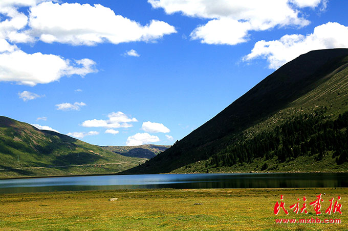 甘孜州的藍天白云、安詳牧群,金黃色西洋油畫般的美景吸引著八方游人(民族畫報社 列來拉杜攝影)