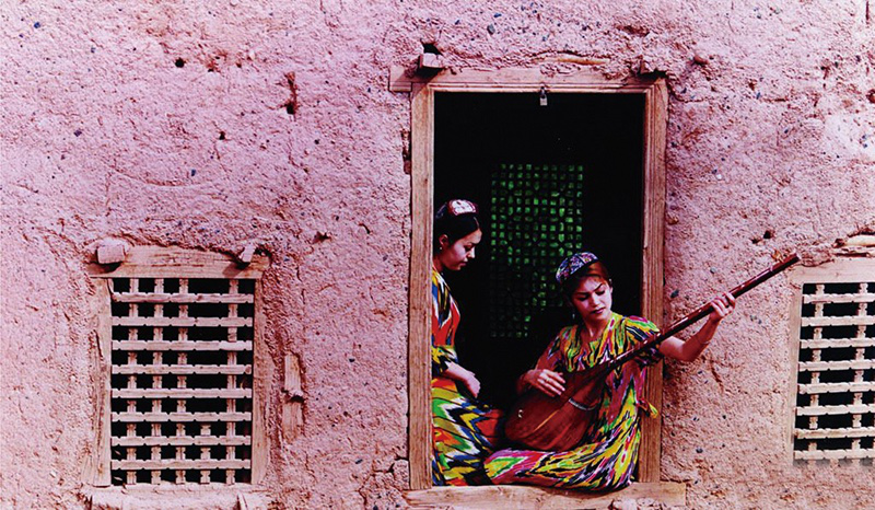 我沒有聽完就匆匆上了車,一會(huì)兒,又下來了。我在他裸露出來的口袋里放了一張10元鈔票。但直到上車我才得知,少年名叫木合買提,今年還不到20歲。他的父親是這個(gè)村子里小有名氣的木卡姆藝人。木合買提生下來眼睛就看不見東西,也沒上過學(xué),但是喜歡熱鬧,村子哪里有木卡姆聚會(huì),就要人帶著他去。他從小就喜歡拉琴,可天賦不高,家里人也就隨他去了。我有些懊悔:錢當(dāng)然有用處,可村子里的人把他喜歡拉琴、喜歡木卡姆看作是一件很平常的事情,并沒因?yàn)檫@個(gè)而施舍他。他應(yīng)該得到尊重。車走了一會(huì)兒,我扒著車窗回頭看,那位盲人少年還懷抱著琴,面向陽光站著。