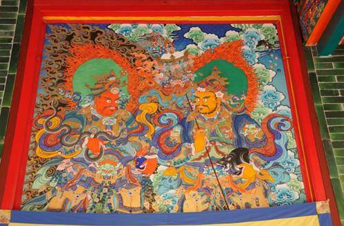 堆繡的工序一般有圖案設(shè)計(jì)、剪裁、堆貼、繡制,個(gè)別圖案部分上色等。堆繡先按規(guī)范的佛畫(huà)繪成畫(huà)稿,再按佛像不同部位的要求選用各色面料,剪貼縫制而成。小幅畫(huà)面為一尊主佛像與下方兩尊小佛像組成,周圍配以花卉、云紋、日月、供品等圖案。與傳統(tǒng)的唐卡不同,堆繡工藝品是用各色棉布、綢、緞剪成所設(shè)計(jì)的各種圖案形狀,精心堆貼成一個(gè)完整的畫(huà)面。其工序有圖案設(shè)計(jì)、剪裁、堆貼及個(gè)別圖案部分上色等。一般來(lái)講,圖案設(shè)計(jì)環(huán)節(jié)主要以客人需求為主。勾草圖最能考量藝人繪畫(huà)技能,也是至關(guān)重要的步驟。圖案設(shè)計(jì)完成后,將各色布料比照?qǐng)D案剪裁、粘好,之后再填充以羊毛或棉花等,以使圖案凸起,最后將各色布料圖案堆貼在設(shè)計(jì)好的大幅布幔上,構(gòu)成一組完整的畫(huà)面,達(dá)到靜中有動(dòng)、生動(dòng)傳神、惟妙惟肖的境地。使畫(huà)面產(chǎn)生豐富生動(dòng)的立體感和織物特有的肌理感,達(dá)到淺浮雕式的藝術(shù)效果,表現(xiàn)力豐富。作品粗獷中顯細(xì)膩,點(diǎn)滴中見(jiàn)絕妙,技藝精湛,巧奪天工。一幅堆繡可以說(shuō)是一幅絲質(zhì)的彩色浮雕作品,極具藝術(shù)觀賞價(jià)值。
