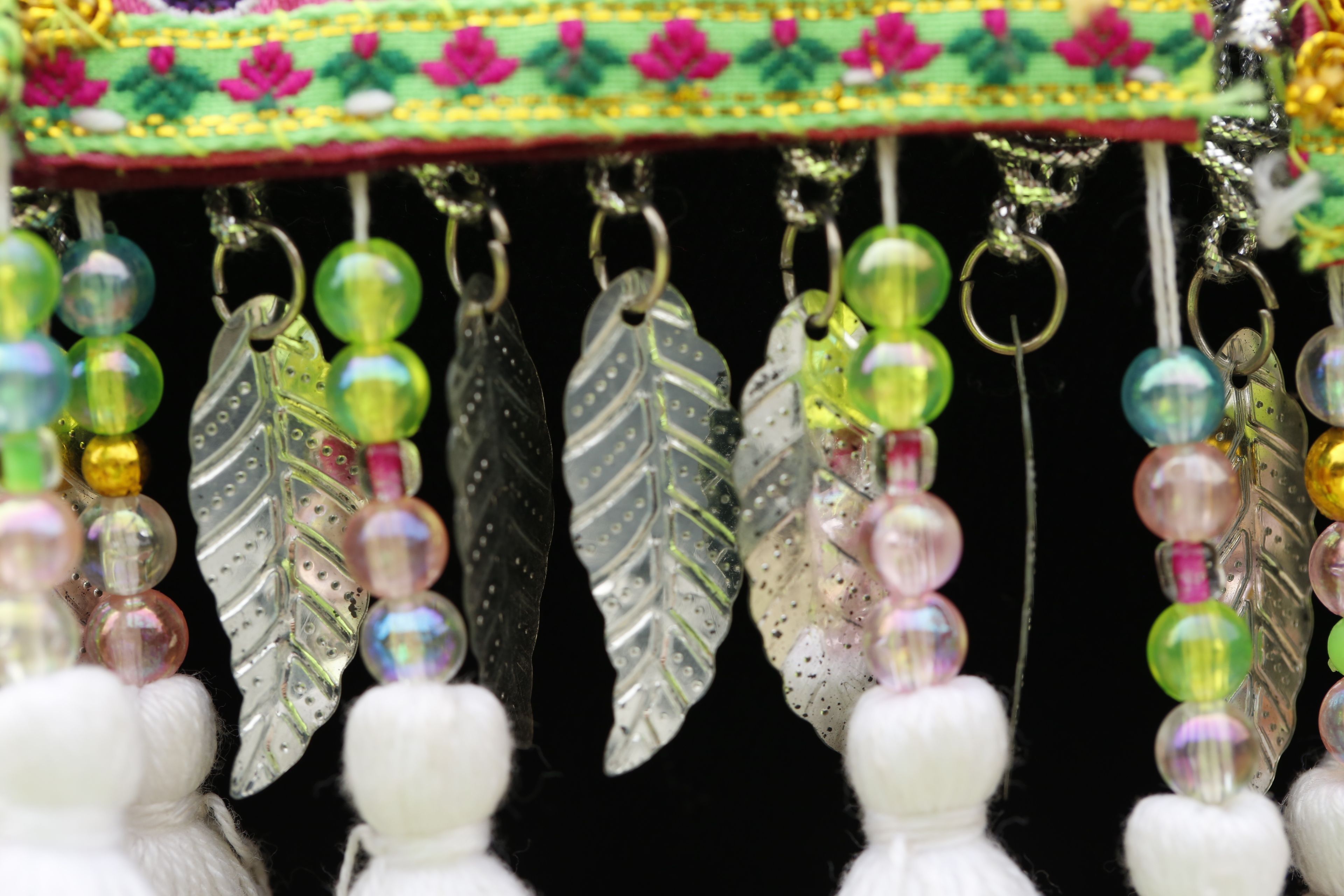 苗族女子服飾花帽-側(cè)面繡花及裝飾2