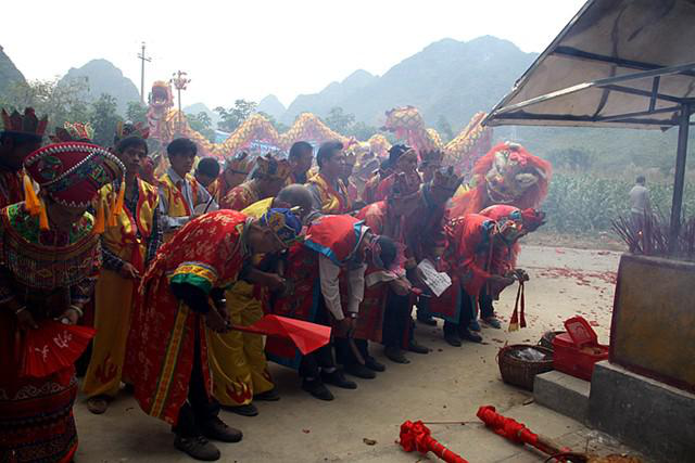 在酬謝自然之神后,由祭司念誦祭文,紀念民族英雄瓦氏夫人,頌揚瓦氏夫人率領將士打擊倭寇的英雄事跡,傳授民族歷史知識,宣揚保衛(wèi)家園、謀求平安的民族精神。