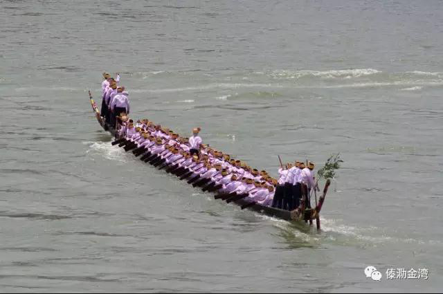 每年的潑水節(jié),西雙版納傣族都要舉行橫渡瀾滄江的賽龍舟活動。一般在潑水節(jié)的第一天舉行。比賽時,江上停泊著披綠掛彩的龍船,船上坐著數(shù)十名精壯的水手,船中間站立1人擊鑼指揮,號令一響,整裝待發(fā)的龍船像箭一般往前飛去,在規(guī)定的范圍內(nèi),哪一隊先到達目的地為勝。
