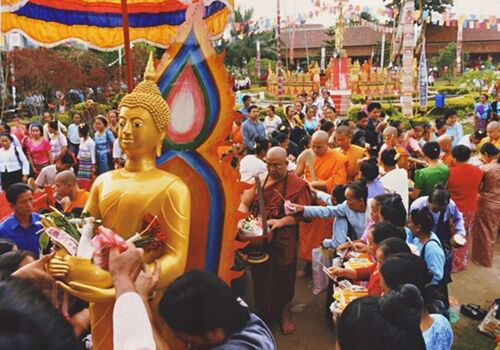 “奧瓦薩”時(shí)間在傣歷1 2月1 5日(陽(yáng)歷9月中旬)。這一天,表示從“關(guān)門節(jié)”以來的安居齋戒期已滿,男女老幼皆盛裝去佛寺里拜佛,以食物、鮮花、蠟條、錢幣獻(xiàn)佛,向佛祖懺悔,祈求佛祖賜福降平安,同時(shí)舉行盛大的娛樂集會(huì),“章哈”演唱,放高升、晚上放焰火、放孔明燈等,慶祝開門節(jié)。此時(shí),雨季已過,稻谷收割完畢,故也稱為慶祝豐收的節(jié)日。