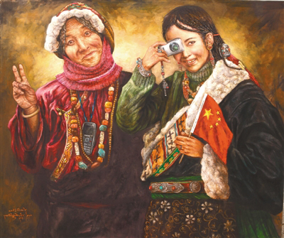 “以前畫畫時(shí),對自己的最高要求就是畫得要逼真,把油畫畫得像一幅放大了的照片,而現(xiàn)在關(guān)注的是如何畫出能體現(xiàn)當(dāng)代的畫面。西藏的美是無窮無盡的,我就想用繪畫的方式窮盡一生去追求,展現(xiàn)大美西藏?!比缃竦乃髀?,淡去了初出茅廬時(shí)一味追求畫面質(zhì)感的匠氣,多了些許內(nèi)心對西藏這片熱土深層次的思考。他筆下的西藏是一片充滿生機(jī)的土地,濃墨重彩之間,既有對傳統(tǒng)和過往年華的回望和懷念,又在仿若不經(jīng)意間透過一個(gè)眼神、一抹色彩、一個(gè)小物件盡情詮釋活力和希望。