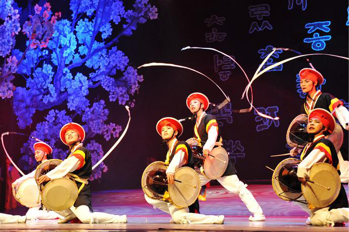 其實(shí)朝鮮族的打擊樂(lè)發(fā)展歷史源遠(yuǎn)流長(zhǎng)。我國(guó)民族打擊樂(lè)眾多,特征各異,各民族的打擊樂(lè)特征又連接著本民族的其他音樂(lè)。朝鮮族音樂(lè)文化的產(chǎn)生與發(fā)展相當(dāng)古老,朝鮮族打擊樂(lè)與音樂(lè)形式多種多樣,有各種類型,如“盤坐式四物樂(lè)”、“游走式四物樂(lè)”、“立鼓”等等,而四物樂(lè)是朝鮮族具有代表性的打擊器樂(lè)組合之一。