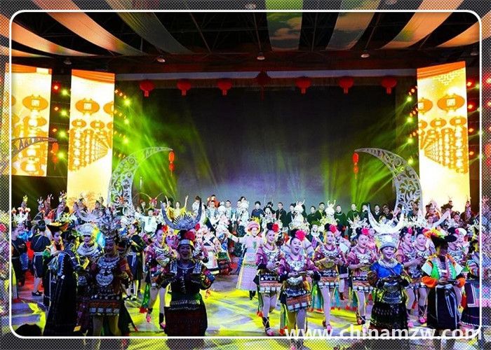 中國(guó)苗族網(wǎng)訊 2019年1月19日,由貴州省社科聯(lián)、貴州民族大學(xué)指導(dǎo),貴州省苗學(xué)會(huì)主辦,貴陽(yáng)市苗學(xué)會(huì)、六盤(pán)水市苗學(xué)會(huì)、安順市苗學(xué)會(huì)、畢節(jié)市苗學(xué)會(huì)、銅仁市苗學(xué)會(huì)、黔西南州苗學(xué)會(huì)、黔東南州苗學(xué)會(huì)、黔南州苗學(xué)會(huì)、貴安新區(qū)苗學(xué)會(huì)、多彩貴州城建設(shè)經(jīng)營(yíng)有限公司共同協(xié)辦的“迎新春-蝶韻楓彩鼓聲來(lái)”2019春節(jié)聯(lián)歡晚會(huì),在貴州省貴陽(yáng)市“多彩貴州城”展示中心隆重舉辦。貴州省9個(gè)州市及貴安新區(qū)苗族、布依族、侗族、土家族、彝族、仡佬族、水族、回族、白族、瑤族、壯族、毛南族、蒙古族、仫佬族、羌族、滿(mǎn)族等17個(gè)少數(shù)民族載歌載舞歌盛世,歡天喜地迎新春。 應(yīng)邀出席春晚的領(lǐng)導(dǎo)嘉賓有貴州省人大常委會(huì)原副主任、省苗學(xué)會(huì)老會(huì)長(zhǎng)楊光林,以及貴州省人大常委會(huì),貴州省社科聯(lián),貴州省民政廳,貴州省政協(xié),貴州民大,貴州省政協(xié),貴州省文化和旅游廳,貴州省總工會(huì),貴州省文聯(lián)、貴州省人大、省委宣傳部、省民政廳,民宗委,社科聯(lián),貴州省八大民族學(xué)會(huì)的相關(guān)領(lǐng)導(dǎo)等應(yīng)邀出席并觀看演出。 春晚得到了貴州省委宣傳部領(lǐng)導(dǎo)關(guān)心,省委常委、省委宣傳部慕德貴部長(zhǎng)對(duì)晚會(huì)專(zhuān)門(mén)作出重要批示,要求把春晚打造成一臺(tái)“思想性、藝術(shù)性、觀賞性統(tǒng)一的文藝晚會(huì),豐富春節(jié)期間群眾性精神文化生活,營(yíng)造歡樂(lè)、喜慶、團(tuán)結(jié)、祥和的節(jié)日氛圍”。 晚會(huì)緊扣“同心共筑中國(guó)夢(mèng),中華民族一家親”主題,圍繞共同團(tuán)結(jié)奮斗、共同繁榮發(fā)展主題,繼承和弘揚(yáng)中華民族優(yōu)秀傳統(tǒng)文化,積極展示貴州少數(shù)民族同胞改革開(kāi)放40周年來(lái)翻天覆地的新變化,用少數(shù)民族原生態(tài)歌舞形式歌頌黨、歌頌祖國(guó)、歌頌民族大團(tuán)結(jié)。春晚節(jié)目,由貴州省各州市國(guó)家非遺保護(hù)節(jié)目、在中央春晚節(jié)目,由貴州省各州市國(guó)家非遺保護(hù)節(jié)目、在中央級(jí)、省市級(jí)比賽中獲獎(jiǎng)的各民族原生態(tài)蘆笙舞、錦雞舞、銅鼓舞、板凳舞,苗族飛歌、古歌、大歌、情歌、絕技;民族盛裝走秀;非遺文化展示等26個(gè)節(jié)目組成。 晚會(huì)由240位貴州各地苗族演員,50位苗族、布依族、侗族、仡佬族、彝族、土家族、回族等17個(gè)少數(shù)民族演員,在主持人的開(kāi)場(chǎng)白介紹中,手持燈花、衣著盛裝在鼓點(diǎn)笙曲中步入會(huì)場(chǎng)。 接著,被國(guó)內(nèi)外譽(yù)為“東方迪斯科”的黔東南州臺(tái)江《反排木鼓舞》拉開(kāi)笙鼓迎春的序幕,雷山國(guó)家級(jí)非遺節(jié)目《掌坳銅鼓舞》、《錦雞舞》,貴陽(yáng)市花溪區(qū)《花鼓舞》、貴安新區(qū)原生態(tài)蘆笙舞《花坡韻》、黔南州《鼓龍鼓虎-長(zhǎng)衫龍》、兒童舞蹈《跺月亮》、畢節(jié)市納雍縣蘆笙舞《滾山珠》、凱里原生態(tài)合唱《春之歌》、安順留守兒童合唱團(tuán)《又見(jiàn)桃花開(kāi)》、金竹樂(lè)隊(duì)蘆笙組合《酒歌》、銅仁市絕技《紙上飛仙》、黔西南州《板凳舞》等,一個(gè)個(gè)節(jié)目精彩絕倫、美輪美奐,舞出少數(shù)民族同胞“美起來(lái)、笑起來(lái)、富起來(lái)、強(qiáng)起來(lái)”的精神風(fēng)貌、音容笑貌。最后,貴州省17個(gè)世居少數(shù)民族240名演員齊唱《愛(ài)我中華》,在“五十六個(gè)民族五十六朵花,五十六個(gè)兄弟姐妹是一家”的歌聲中把整臺(tái)晚會(huì)推向高潮,拉下帷幕。 此次春晚民族文化濃厚、明星歌手薈萃、演員陣容龐 此次春晚民族文化濃厚、明星歌手薈萃、演員陣容龐大、節(jié)目精彩絕倫。這些節(jié)目,涵蓋了東部方言、中部方言和西部方言各民族支系。遍及黔東南州、黔西南州、黔南州、貴陽(yáng)市、安順市、畢節(jié)市、六盤(pán)水市、銅仁市和貴安新區(qū)。老藝術(shù)家榜香、青年歌手阿幼朵、潘興周、雷艷、楊一方、阿娜丹、歐桑、楊佳茜、楊祖桃、楊思雨、楊廷勇、吳敏成、阿蕾倩、余秋陽(yáng)、阿依三姐妹、谷阿斯組合、阿依山娃組合等20多名少數(shù)民族歌星紛紛登臺(tái)獻(xiàn)藝,演員達(dá)300余人。 貴州省人大常委會(huì)原副主任、貴州省苗學(xué)會(huì)老會(huì)長(zhǎng)楊光林說(shuō),春晚的舉辦,有利于提高民族同胞的戰(zhàn)斗力、凝聚力、感召力!春晚牢牢把握了“百姓富、生態(tài)美”兩條底線(xiàn),通過(guò)晚會(huì)形式,吹響了少數(shù)民族同胞在黨中央和貴州省委、省政府的堅(jiān)強(qiáng)領(lǐng)導(dǎo)下,致力于決戰(zhàn)脫貧攻堅(jiān),決勝同步小康、實(shí)現(xiàn)鄉(xiāng)村振興的號(hào)角。是號(hào)召大家參與國(guó)家實(shí)施的“鄉(xiāng)村振興、脫貧攻堅(jiān)”任務(wù),努力實(shí)現(xiàn)貴州人民2020年和全國(guó)人民同步實(shí)現(xiàn)小康及全國(guó)人民正在努力實(shí)現(xiàn)的“中國(guó)夢(mèng)”作出貢獻(xiàn)的動(dòng)員令! 晚會(huì)當(dāng)天,春