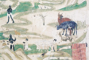 莫高窟第61窟《牧女獻(xiàn)糜》(五代)。敦煌研究院供圖