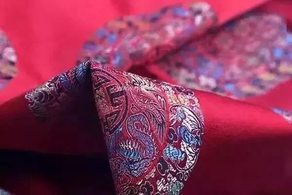 民族錦一般采用多色彩條嵌入金銀絲織成,多用于民族服飾,故名。其特點是錦面上的圖案從經緯線交織中顯現出自然光彩,富有光澤。常見的圖案有團花、葵花、“萬”字“壽”字等。彩暈錦的特點是織紋華貴相映,明暗匹配,層次分明,并以色暈過渡,花紋絢麗多彩,別具一格。