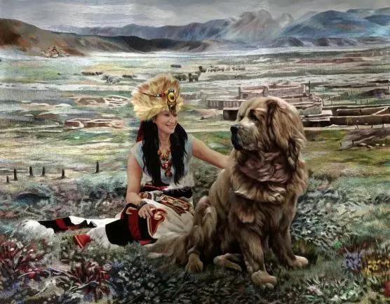 作品采用亂針繡針?lè)ê褪窭C傳統(tǒng)施毛針?lè)ㄏ嘟Y(jié)合的工藝?yán)C制,呈現(xiàn)出藏族少女與藏獒和諧相處的畫面,民族風(fēng)情濃郁,人物塑造逼真。