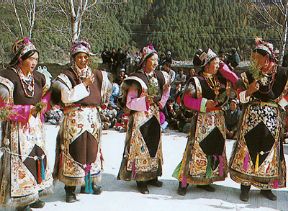 在工布地區(qū),不管是遠方的來客,還是常來常往的朋友,一踏進主人的新家,主人首先端出的是香噴噴的酥油茶。如果是尊貴的客人,還要被請到上座。招待來客時,主人會敬上酥油茶和青稞酒,尤其是青稞酒,主人要兩手棒著,恭敬地送到客人手上,客人喝一口,主人添一次,連續(xù)三次。客人最后一口氣把杯中的酒喝完,這就是通常所說的三口一杯。如果客人推辭,主人還要獻上優(yōu)美動聽的酒歌,以此來表達主人的熱情和對客人的尊敬,直到客人把杯中的酒喝完為上。手捧酒杯,主人依次要給所有的來客敬上一遍。杯杯醇酒,盛滿了工布人的情和意。那情景,常令在場的人感動不已。