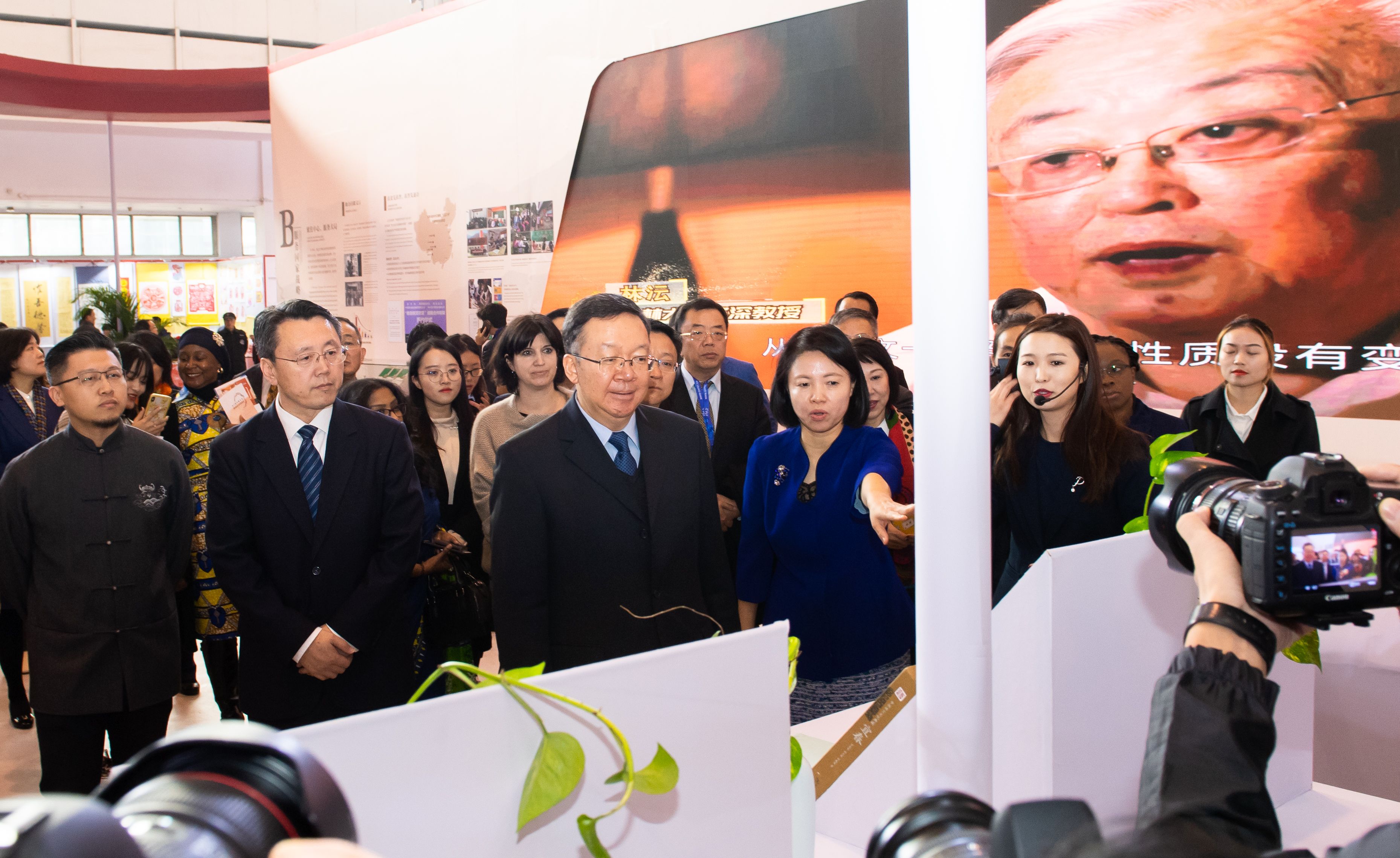 10月25日,教育部副部長、國家語委主任田學(xué)軍出席第三屆中國北京國際語言文化博覽主論壇——“語言智能與語言多樣性”國際語言文化論壇開幕式,并在開幕式后赴中國國際展覽中心巡展,在現(xiàn)場(chǎng)聽取了“新中國成立七十周年語言文字事業(yè)發(fā)展成就展”介紹,參觀了科大訊飛、京津冀協(xié)同發(fā)展展區(qū)、粵港澳大灣區(qū)展區(qū)、廣西語委展區(qū)以及語言科技、語言出版、語言創(chuàng)意展,在語言藝術(shù)展演區(qū)欣賞到由首都師范大學(xué)外國留學(xué)生演出的詩詞吟誦,并在成就展”簽名樹”上簽名。