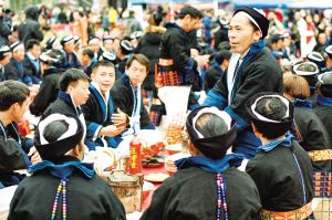 每逢重要節(jié)日,白褲瑤群眾都有舉辦長(zhǎng)席宴的習(xí)俗。以前,芭蕉葉當(dāng)作盤子,芭芒干折成筷子,一個(gè)飯團(tuán)、一塊牛肉,再加一碗酒,就是長(zhǎng)席宴的全部?,F(xiàn)在改變了很多,但不變的是白褲瑤自然、和諧、平等的美德。2019年2月拍攝。