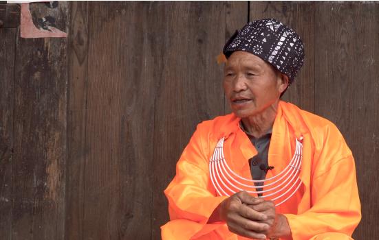 谷灑村的苗族為背牌苗,當(dāng)?shù)赜肿苑Q高坡苗。背牌苗的得名,來(lái)源自背牌苗的服飾。背牌苗男子服飾分為兩種,一種是鬼師服飾。鬼師服飾為橘黃色斜襟長(zhǎng)衫,胸前帶銀項(xiàng)圈,頭部帽子是用帶有白色圖案的黑色布帶圍繞頭部而成。