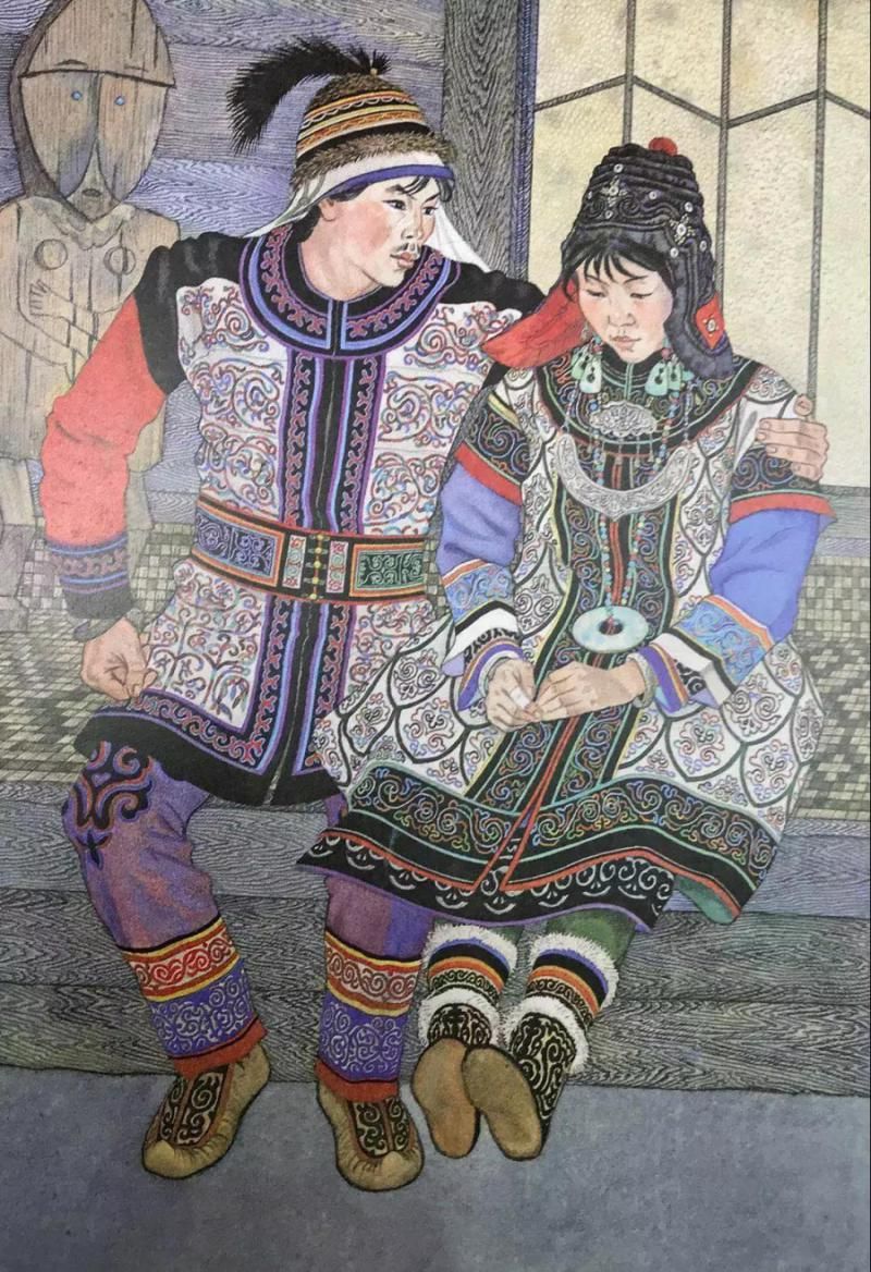 那乃族的插畫,有的用細(xì)膩的繪畫語言真實再現(xiàn)了那乃族的生活場景,有的用生動形象的裝飾語言表現(xiàn)了那乃族的傳說故事。