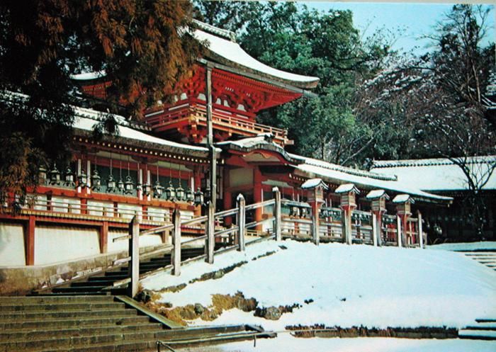 春日大社是日本神社,貴族藤原氏為自己家族而建。每年八月十五,神道兩側(cè)2000多個(gè)石燈籠將被點(diǎn)燃,稱為萬燈節(jié)。日本人新年那天會(huì)舉家去神社參拜(圖二十八)。