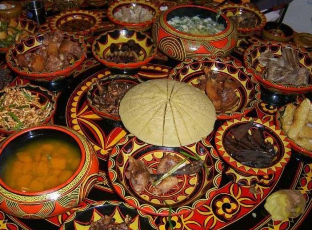 在吃方面,彝族人民的飲食習(xí)慣大多與漢人相同,只是主食以土豆、蕎麥、玉米等粗糧為主,其中比較有名的就是“彝族八大碗”,現(xiàn)代八大碗一般是清蒸魚,無量山烏骨雞湯,紅墩包肉,紅白豆腐,干酥肉,臘三線肉、吹泡肝拼盤(或排骨煮蘿卜),景東小炒肉,炒黑木耳干筍、糖藕、蛋卷或蒸豬膀。