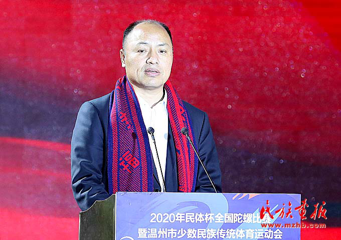 為發(fā)展民族傳統(tǒng)文化體育,促進(jìn)民族交往交流交融,推進(jìn)民族團(tuán)結(jié)進(jìn)步事業(yè),不斷鑄牢中華民族共同體意識,11月27日,2020“民體杯”全國陀螺比賽暨溫州市少數(shù)民族傳統(tǒng)體育運動會在浙江省溫州市鹿城區(qū)白鹿洲公園隆重開幕。浙江省委常委、溫州市委書記陳偉俊,國家民委監(jiān)督檢查司司長隋青,浙江省民宗委副主任鐘新章,溫州市委常委、統(tǒng)戰(zhàn)部部長施艾珠,市委常委、秘書長王軍,市人大常委會副主任張洪國,市人民政府副市長陳應(yīng)許,市政協(xié)副主席諸葛啟釧等領(lǐng)導(dǎo)出席開幕式,浙江省、市、縣民族工作相關(guān)單位負(fù)責(zé)人及裁判員、教練員、運動員代表600余人參加了開幕式。