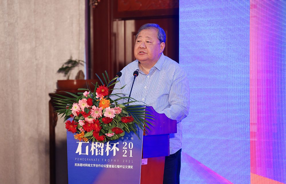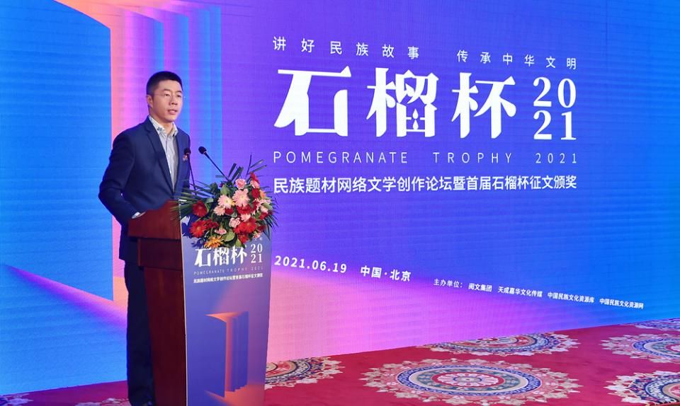 6月19日,民族題材網(wǎng)絡(luò)文學(xué)創(chuàng)作論壇暨首屆石榴杯征文大賽頒獎(jiǎng)典禮在京舉行。作為國(guó)家民委主辦的“中華民族全家?!毕盗谢顒?dòng)之一,首屆石榴杯征文大賽得到了國(guó)家民委文化宣傳司和中國(guó)少數(shù)民族文化藝術(shù)促進(jìn)會(huì)的指導(dǎo)與支持,由閱文集團(tuán)聯(lián)合天成嘉華文化傳媒、中國(guó)民族文化資源庫(kù)、中國(guó)民族文化資源網(wǎng)共同舉辦。本屆大賽以“講好民族故事 ,傳承中華文明”為主題,涌現(xiàn)出眾多弘揚(yáng)民族精神、表達(dá)文化自信、傳播正能量的作品。經(jīng)過專家推薦及嚴(yán)格評(píng)審,《草原有座蒙古包》、《走西口之天山行》、《彩云微光》等三部作品獲“最具民族風(fēng)采獎(jiǎng)”,《神藏》、《歡想世界》、《爛柯棋緣》、《時(shí)光和你都很美》、《恰似寒光遇驕陽(yáng)》、《黎明醫(yī)生》、《暖君》、《驚雷》、《大訟師》、《消防英雄》等十部作品獲“優(yōu)秀作品獎(jiǎng)”。所有獲獎(jiǎng)作品都將收錄入中國(guó)民族文化資源庫(kù)。中國(guó)作家協(xié)會(huì)副主席、書記處書記吉狄馬加表示,本屆石榴杯大賽是在黨和國(guó)家長(zhǎng)期以來(lái)堅(jiān)持的對(duì)民族文化、少數(shù)民族作家創(chuàng)作和民族題材創(chuàng)作的大力扶持下,依托網(wǎng)絡(luò)文學(xué)平臺(tái),將文學(xué)作品與影視作品改編、游戲、動(dòng)漫產(chǎn)品制作結(jié)合起來(lái),探索的一條發(fā)展民族文化的新路,具有開創(chuàng)意義。
