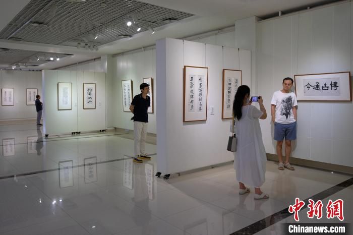 圖為觀眾在書(shū)法展上拍照留念?!『闻罾?攝