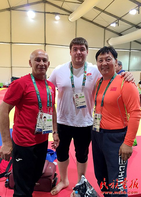 2016年,里約奧運(yùn)會(huì)期間,烏日根桑格(左)與中國(guó)國(guó)家柔道隊(duì)隊(duì)員于頌(中)、國(guó)家柔道隊(duì)原主教練程志山合影留念。
