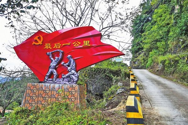 西灑鎮(zhèn)巖頭村,道路旁高聳的峭壁上鐫刻著兩個(gè)鮮紅大字——“實(shí)干”?!皻v時(shí)12年,我們?cè)趹已虑捅谏嫌采隽?米寬進(jìn)村路!”村民小組長(zhǎng)李華明說,現(xiàn)在正與村民謀劃開辦“最后一公里”農(nóng)家飯莊,村里的“最后一公里”展覽館也正在建設(shè)。