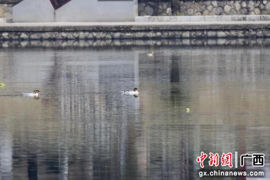 廣西荔浦市荔江流域首次發(fā)現(xiàn)國家一級保護(hù)動物:中華秋沙鴨。張德林 攝