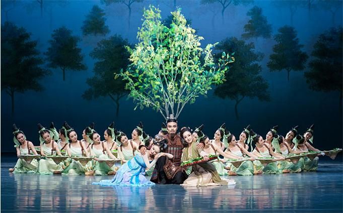 舞劇《傳絲公主》以蠶絲為戲劇元素,以蠶桑女寧兒與于闐王子尉遲的愛情為外在線索,以盛唐時(shí)中原與西域的交流往來為隱伏線索,將凄美的愛情故事與壯闊的家國情懷交織在一起,引領(lǐng)觀眾穿越到大唐盛世,感受繁興的絲路文化和豐富多彩的民族風(fēng)情。