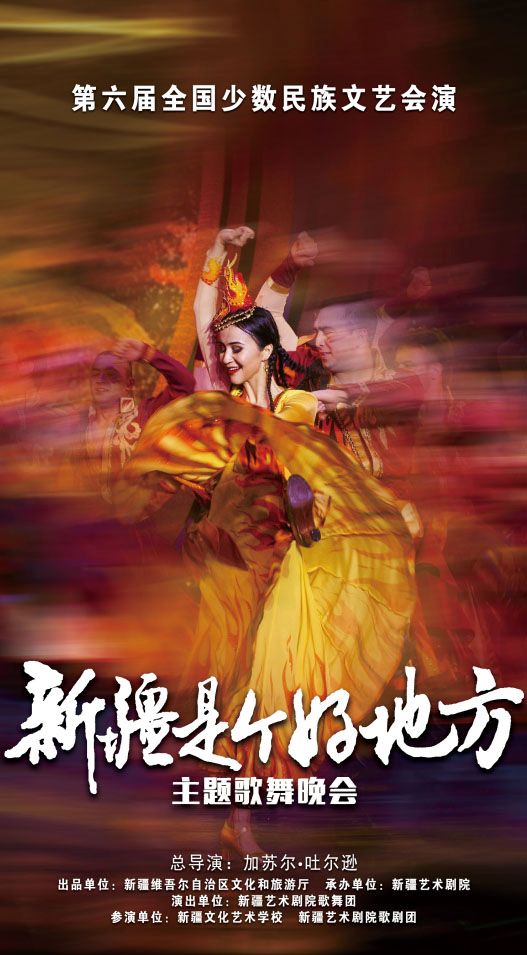 9月11日,由新疆維吾爾自治區(qū)文化和旅游廳策劃指導(dǎo),新疆藝術(shù)劇院統(tǒng)籌打造,新疆藝術(shù)劇院歌舞團(tuán)創(chuàng)作的主題歌舞晚會(huì)《新疆是個(gè)好地方》亮相第六屆全國(guó)少數(shù)民族文藝會(huì)演,在央視網(wǎng)和國(guó)家民委門戶網(wǎng)站進(jìn)行展播,向全國(guó)觀眾講述了多彩的新疆、團(tuán)結(jié)的新疆、大美的新疆。
