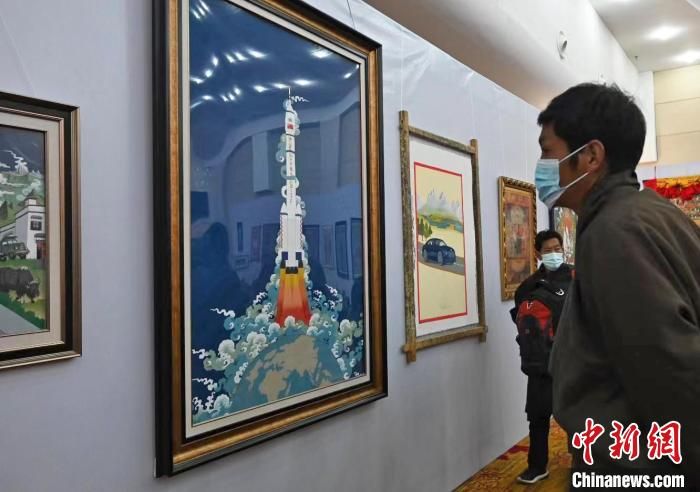 邊巴是作品《一飛沖天》的作者,這位畫師從1979年從事唐卡繪畫至今。他說,該作品以神舟十三號為主題,描繪了飛船沖出地球奔向星辰大海的瞬間。采用勉唐派唐卡繪畫語言和傳統(tǒng)礦植物顏料。同時融合了漢藏審美視角,立足于中國放眼世界的人類命運共同體胸懷,嘗試新時代新唐卡新融合的藝術(shù)表達(dá)。