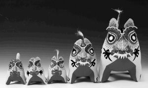 泥叫虎是山東高密的一種民間泥塑,起源于明代萬歷初年,是形、色、聲、動俱佳的民間工藝品,與撲灰年畫、剪紙并稱為“高密三絕”。泥叫虎腰部由牛皮連接,擠壓其頭部和尾部后,會發(fā)出響聲,叫虎一名由此而來。河南也有叫虎,又稱皮老虎。相較之下,山東的泥叫虎更具特色,而且在藝術(shù)風格上更大氣,樣式憨態(tài)可掬,哨子發(fā)出的聲音也十分有趣。