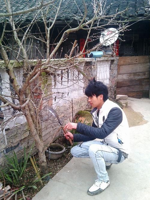 圖為革家后生用柴刀在給果樹“放血”,確保果樹開花結(jié)果