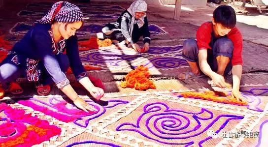 試想,一處古老的維吾爾族院落里,土質(zhì)的院墻和房子將一家人聚攏在一起,走進(jìn)這家人的客廳,整潔而舒適,印花布的身影隨處可見:長(zhǎng)條形的藍(lán)色印花布作為床圍;?一張方形的印花布被鋪在桌子上?與餐盤、茶具相互映襯,?恬靜和諧;?坐墊套、窗簾……?印花布的身影無(wú)處不在,點(diǎn)點(diǎn)滴滴地點(diǎn)綴著這家居室,也將女主人的心靈手巧表現(xiàn)得淋漓盡致。?這是怎樣一幅遠(yuǎn)古家庭的生活場(chǎng)景啊?