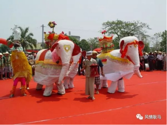 白象舞是云南耿馬縣傣族群眾盛行跳的一種民間舞蹈,也是耿馬特有的舞種,白象舞屬雙人擬獸舞,十分講究舞者之間的默契配合。舞蹈步伐穩(wěn)健、有力。舞蹈基本動(dòng)作有:“原蹈步”、“前后跳”、“左右跳”、“鼻走”等。經(jīng)過(guò)民間藝人長(zhǎng)期不斷改進(jìn),而今,耿馬白象舞已經(jīng)形成了一整套基本舞步,表演者借助白象道具模仿大象動(dòng)作,把笨拙的大象表現(xiàn)得活潑可愛、步伐穩(wěn)健、韻律十足。