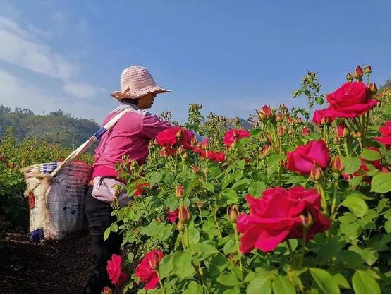 2019年,阿舍鄉(xiāng)斗南村成立清香玫瑰合作社,通過土地流轉(zhuǎn)種植玫瑰105畝,主要種植金邊玫瑰、墨紅玫瑰、藍蝴蝶等品種。通過幾年的發(fā)展,斗南村的玫瑰花茶已經(jīng)形成“種植、加工、銷售”為一體的產(chǎn)業(yè)化發(fā)展模式,每年帶動就業(yè)200多人,戶均增收1萬多元。
