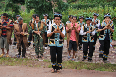 傳承在德安鄉(xiāng)葫蘆笙舞蹈已有上百年的悠久歷史,哈尼族民間傳統(tǒng)節(jié)日、娶親嫁女,生兒育女、喬遷新居等時(shí)節(jié)、都要舉行傳統(tǒng)的跳笙活動(dòng),一跳就是一個(gè)通宵。而且各個(gè)寨子里老幼都會(huì)跳笙,因此傳承較為廣泛。它不僅保留有傳統(tǒng)的娛樂(lè)活動(dòng),也保留著大量的生活勞動(dòng)歌舞。從葫蘆笙舞中我們可以找到當(dāng)?shù)厝嗣袢罕姷膫鹘y(tǒng)文化習(xí)俗、生產(chǎn)生活習(xí)俗和節(jié)日習(xí)俗的演變及發(fā)展。葫蘆笙舞蹈無(wú)論在內(nèi)容上還是在形式上均有模式性、群體性和變異性等民俗文化的特點(diǎn)。把一些自然形態(tài)的舞蹈逐漸整理規(guī)范為相對(duì)穩(wěn)定的組合套路,也真實(shí)記錄下了當(dāng)?shù)厝嗣裆a(chǎn)方式發(fā)展變化的軌跡?,F(xiàn)在,僅德安鄉(xiāng)蘭慶村共有葫蘆笙傳承成員一百多人。其中,男96人、女10人、少兒10人,平均年齡約40歲左右。
