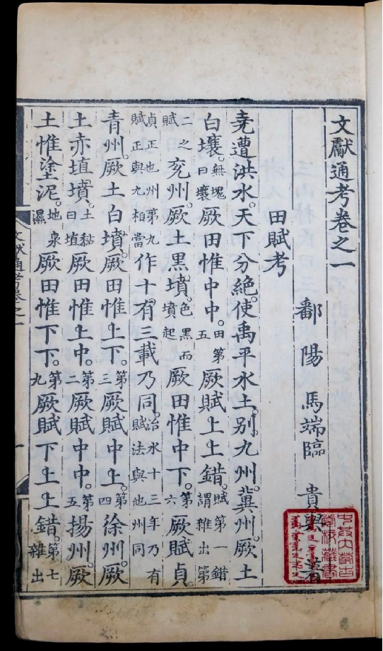 《文獻(xiàn)通考》為“十通”之一。“十通”即中國古代十部政書,系統(tǒng)完整地記錄了中國歷代典章制度沿革發(fā)展,為學(xué)習(xí)古代政治制度必不可少之參考書?!笆ā笔甲蕴拼庞幼锻ǖ洹?,連同此后宋鄭樵撰《通志》,元馬端臨撰《文獻(xiàn)通考》,合稱“三通”。清乾隆時加入官修的《續(xù)通典》《續(xù)通志》《續(xù)文獻(xiàn)通考》以及《清通典》《清通志》《清文獻(xiàn)通考》合稱“九通”。1935年再加上《清續(xù)文獻(xiàn)通考》,總稱為“十通”,其中以《文獻(xiàn)通考》最有價值。