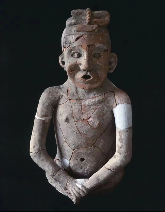 首先是對當(dāng)?shù)匦率鲿r代文化因素的繼承和延續(xù),以男女立人形青銅短劍為例,其圓雕人像造型,是對遼西地區(qū)人形雕塑傳統(tǒng)的繼承。與小河西文化陶塑人頭像、興隆洼文化石雕人像、趙寶溝文化陶塑人頭像、紅山文化陶塑人像、小河沿文化人形陶壺等一脈相承,雖然人像造型和載體略有不同,但未曾間斷,體現(xiàn)了遼西地區(qū)史前文明的祖先崇拜和宗教祭祀禮儀傳統(tǒng)的延續(xù)性。人像造型既是禮制的最高呈現(xiàn),同時具有標(biāo)志身份和地位的功能。