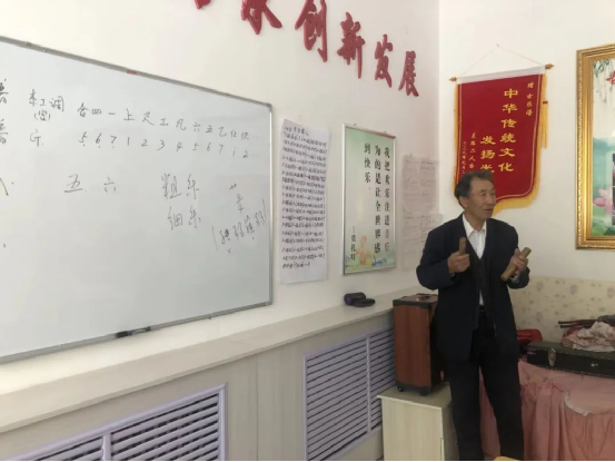 南文述從小酷愛音樂,深感傳統(tǒng)音樂的魅力,為了讓千年古韻律更好地綻放光彩,潤澤當(dāng)?shù)厝罕姷木袷澜?,南文述退休后長年收集、整理古樂曲相關(guān)資料,學(xué)習(xí)、傳承古樂曲演奏,在全縣范圍內(nèi)共收集到七十余首。商都縣大力挖掘和保護(hù)文化遺產(chǎn)工作開展后,為南文述免費(fèi)提供了工作室,南文述在此開辦了民族樂器培訓(xùn)班,為感興趣的群眾義務(wù)教學(xué)。目前已有學(xué)員60余人,2022年古樂曲申報成功為第七批內(nèi)蒙古自治區(qū)級非物質(zhì)文化遺產(chǎn)代表性項目,在當(dāng)?shù)厝罕娚顚拥木褡非笾邪l(fā)揮著越來越重要的作用。