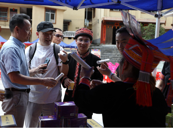 活動當日還邀請我縣兩家企業(yè)參加“非遺購物節(jié)”,分別是金秀瑤族自治縣瑤山源養(yǎng)生堂有限公司、黃泥鼓文創(chuàng)工作室參加淘寶天貓聚劃算平臺非遺購物節(jié),參加線上銷售的商品有:瑤族藥浴(泡澡藥包、泡腳藥包、袋用茶)、黃泥鼓酒杯、茶杯。推選1個商家參加“非遺購物節(jié)”線下啟動儀式。