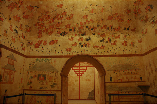 和林格爾東漢壁畫墓復(fù)原陳列展。位于和林格爾縣新店子鎮(zhèn)的小板申東漢“使持節(jié)護(hù)烏桓校尉”壁畫墓,是秦漢文化的主要標(biāo)志性實(shí)物,是東漢莊園制度的真實(shí)再現(xiàn),也是民族團(tuán)結(jié)的重要?dú)v史見證。本館以1:1.5的比例進(jìn)行了復(fù)制并展示給觀眾。