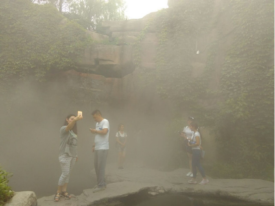 人們不期而遇的步伐、眼神和享受,心照不宣,現(xiàn)在人們重視外出活動(dòng),與山相隨,與花共舞,與自然接觸,如心靈瞬間注入水珠一般叮咚作響,無(wú)限的遐思似乎要占領(lǐng)整個(gè)世界,聽(tīng):人工假山中悠悠的吶喊聲和飛流直下的瀑布遙相呼應(yīng)著,伴著一股股的霧氣、人流,如入仙境一般,云里霧里??矗汗珗@里站在花叢中的微笑與微笑相互對(duì)視著,靜謐中跳動(dòng)的旋律和人在游途中溫馨的場(chǎng)景交織在一起,構(gòu)成了一幅美麗的畫(huà)卷。