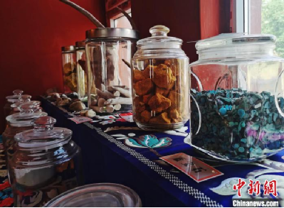 圖為唐卡繪畫(huà)礦物顏料展示?!?zhí)砀?攝