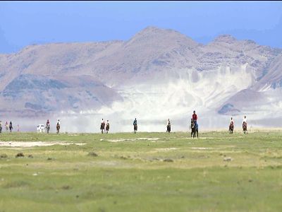 賽馬冠軍在雨中訓(xùn)練兒子的騎術(shù)
