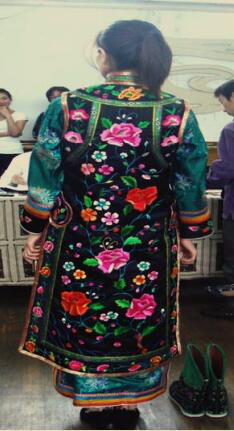 蒙古族科爾沁部的服飾,是內(nèi)蒙古自治區(qū)東部地區(qū)比較有代表性的蒙古族服飾,以用料講究、款式多變,色彩和諧,工藝復(fù)雜見長(zhǎng)??茽柷卟菰系拇汤C,早年的時(shí)候,是比較簡(jiǎn)單的,后來(lái)工藝流程才變得復(fù)雜起來(lái),包括設(shè)計(jì)繡稿、勾稿、染線,上棚,配線,刺繡,下棚等若干步驟,其做工細(xì)膩,講究針?lè)ê图y路,每一件繡品都精益求精,一絲不茍,出來(lái)的繡品堪稱精品佳作。蒙古族刺繡的針?lè)ò?大類40多種,有齊針、散針、稀針、接針、打籽、退暈等刺繡針?lè)ā?/p>
