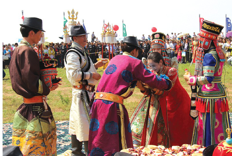 鄂爾多斯地區(qū)至今仍然比較完整地保留著鄂爾多斯婚禮的儀式程序,并使其發(fā)展演變成為一種禮儀化、規(guī)范化、風俗化和歌舞化的民俗文化現(xiàn)象。自始至終洋溢著迷人的蒙古民族風情。
