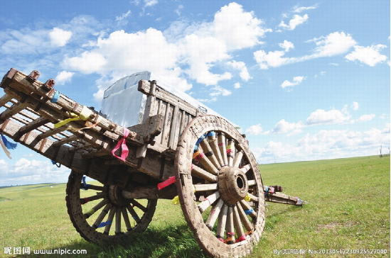 蒙古族牧民常用的一種木制大輪車。多用樺木或柳木制做。車輪高約1米,車身重約百斤,可載重300—450公斤,日行約30余公里。每車用一頭牛來拉,一人可駕馭數輛,適于在草原、沙漠、雪地等行走。亦可將數十輛勒勒車首尾相接形成近百米長的車隊,十分壯觀,也形成了草原上特有的風情?,F在已多被膠皮鐵輪的軸承車所替代。另外還有一種“蒙古轎車”,是一種在勒勒車基礎上經過改造專門乘人的車。其與勒勒車不同之處在于車體上有用柳條子彎曲后扎成的車棚,棚子的外面用毛氈包圍,形成一個既擋陽光,又擋風雨,防曬御寒的帳篷。