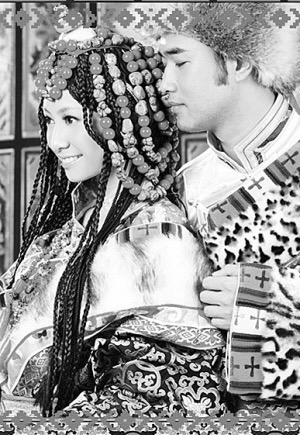 藏式婚禮上,身穿盛裝的一對(duì)新人