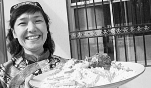 烤羊肉串是風(fēng)靡大江南北、婦孺皆知的維吾爾族風(fēng)味小吃,而抓飯卻鮮為人知。如果說烤羊肉串是民眾皆可大快朵頤的快餐,那么抓飯則是貴族式的高檔食品?;蛘哒f,烤羊肉串坐著、站著、走著,甚至歌著、舞著都可吃,而抓飯必須鋪地毯、展餐單,盛之精美的大盤中,長(zhǎng)跪而食。