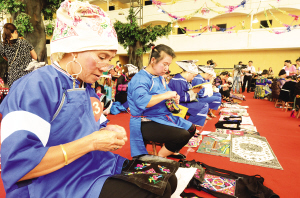 圖為活動(dòng)之一的貴州省黔東南州第二屆“百佳繡娘”決賽現(xiàn)場。經(jīng)過層層選拔出的100名繡娘在此飛針走線,同秀技藝,展現(xiàn)了少數(shù)民族民間文化獨(dú)特的藝術(shù)魅力。
